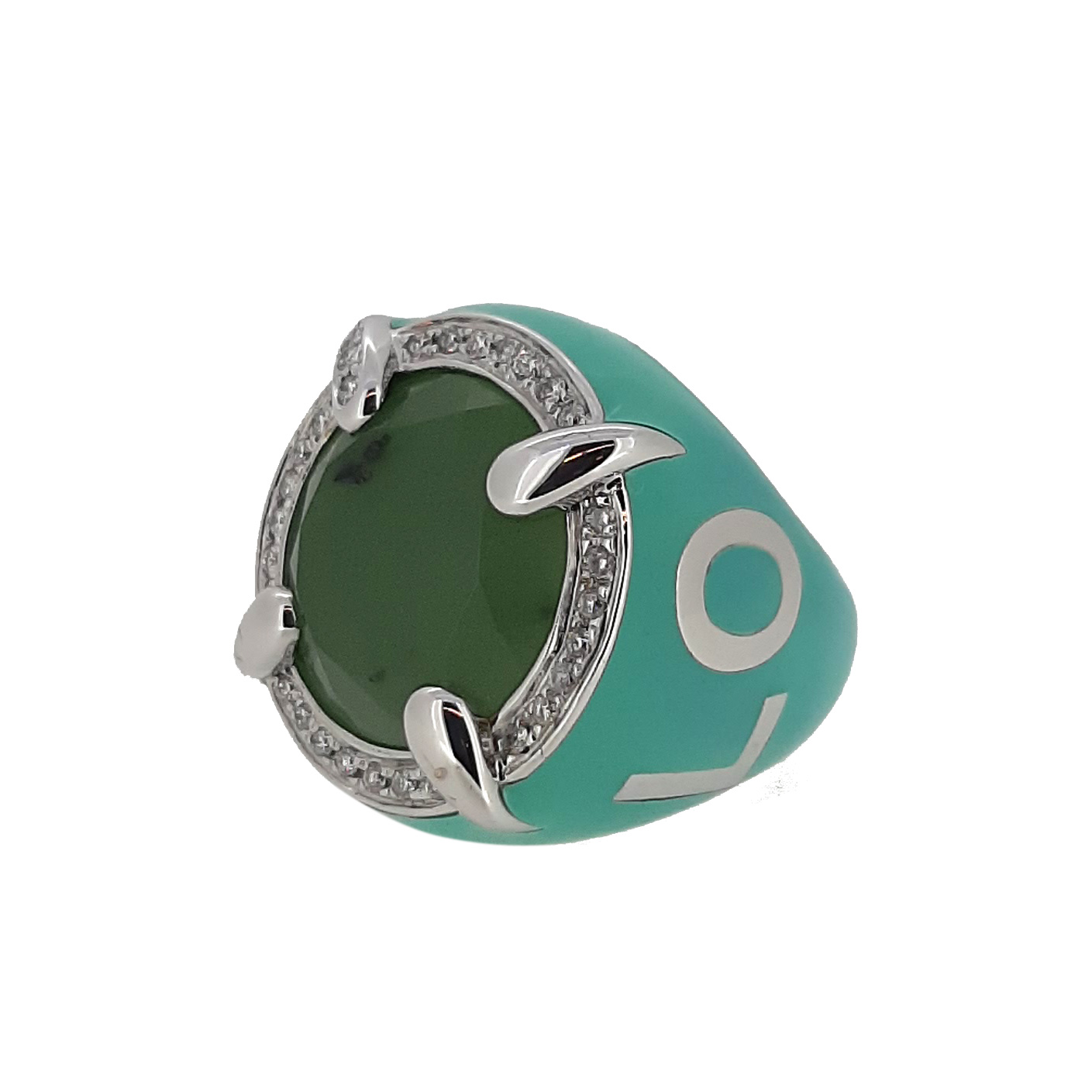 Anello Collezione Pace Amore In Oro, Diamanti, Smalto E Giada