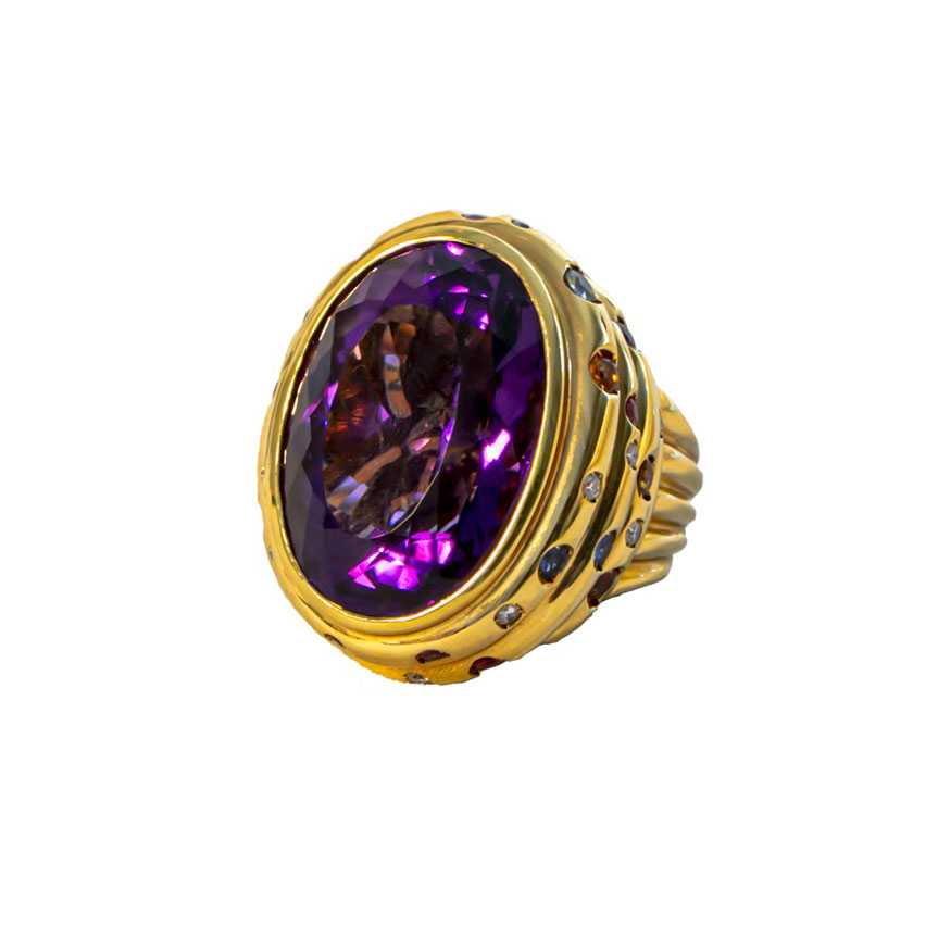 anello collezione pezzi unici in oro, tormalina, diamanti e zaffiri